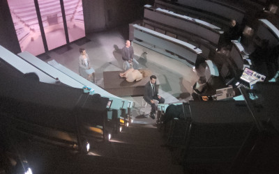 Heute war ich den ganzen Tag in der alten Chirurgie. Liza, die Sounddesignerin kam, und wir probierten mit Mikrophonen zur Sprachverständlichkeit herum - aus optischen Gründen hätte man gerne Laviliers, akustisch wären natürlich Headsets zu bevorzugen. Sonst einige EQ Sachen in Ihrem Soundtrack / dem Speaker System und viiiel abwarten. Well. Immerhin, abgedunkelt und bei Sonnenuntergang hat der Raum eine richtig trügerisch-friedliche Atmosphäre. Eigentlich schön und beruhigend, aber auch hinterhältig. Videowände wurden aufgabaut, und die Videos sehen sehr, sehr gut aus.