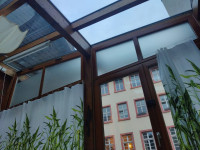 Ravi pennte von gestern bei mir, aber nach dem Aufstehen ging's trotzdem direkt in die Alte Chirurgie. Dort konnte ich Liza bei ein paar kleineren Mix-Entscheidungen helfen, und fuhr dann… zu Ravi. Dort brachten wir ein Deckensegel im Wintergarten / seinem aktuellen Zimmer an, das sah so unglaublich hässlich aus, dass wir echt dumm lachen mussten. Ansonsten wurde da noch Milchglasfolie an Fenster angebracht, das funktioniert sehr gut ebenso wie Curry-Wurst und Bäcker-Krams essen.